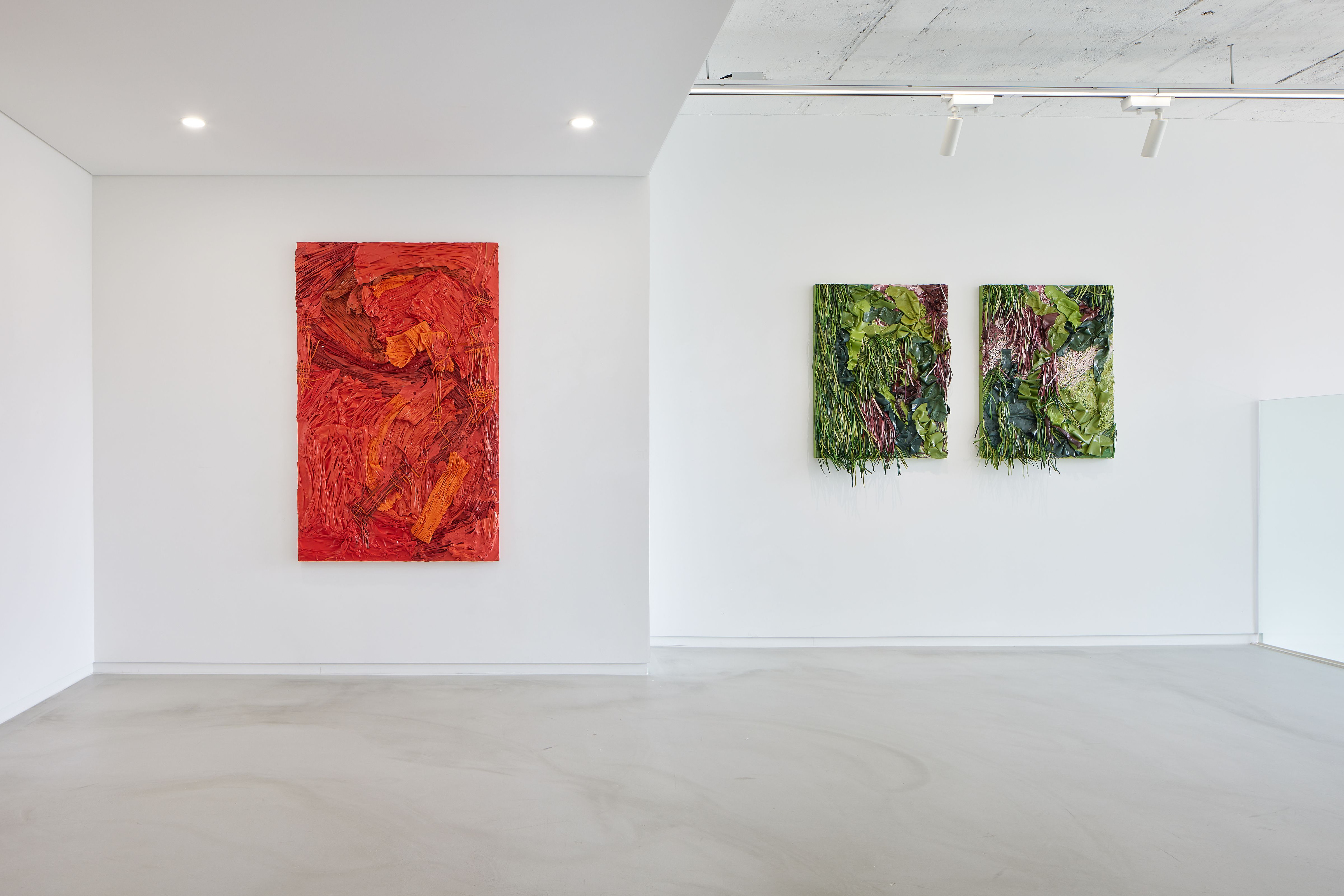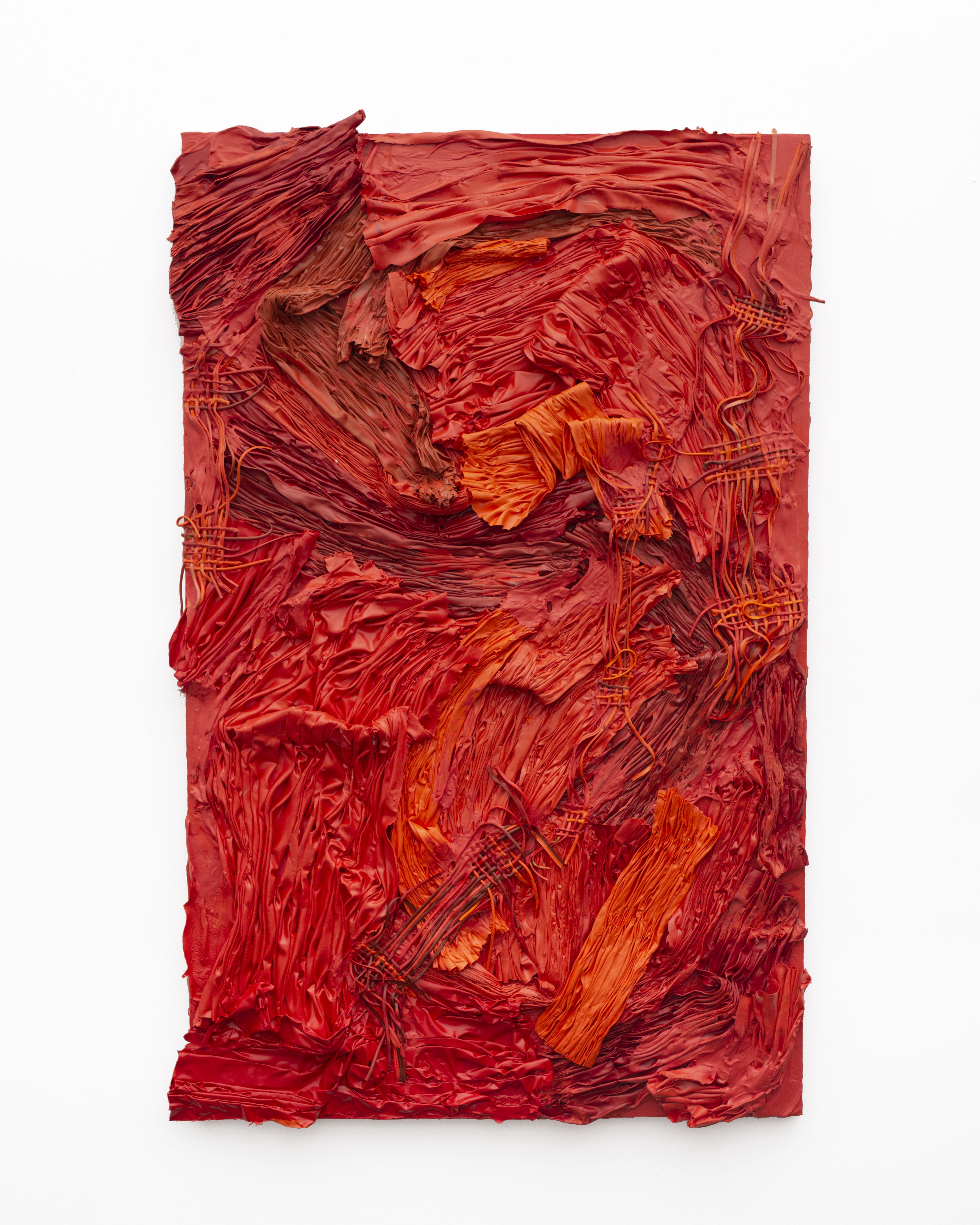 Moving away from the domestic, Gabrielle Kruger turns to the natural landscapes of Cape Town. Her practice understands painting as a durational process shaped by accumulation, resistance, and material change. Working with acrylic paint dried into pliable sheets, she stacks, scrapes, cuts, and weaves the surface into forms that sit between painting and sculpture. Through sustained physical engagement with paint, these works register the shifting conditions of the city’s natural environment.